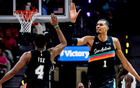 然而,进入到联盟之后,亨德森和文班亚马的发展轨迹也大不相同,加盟马刺队之后,文班亚马立马就被当作球队的核心来培养,虽然前两个赛季球队的战绩不佳,但是文班亚马个人的数据和表现确实逐渐上涨的,于是到了第三年,文班亚马彻底迎来爆发,不仅打出了MVP级别的表现,而且还带领马刺队以西部第二名的成绩重返季后赛,如今的他已经成为了联盟最炙手可热的球星。