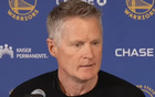 北京时间4月14日,在NBA附加赛勇士对阵快船赛前,主帅科尔接受了媒体的采访。